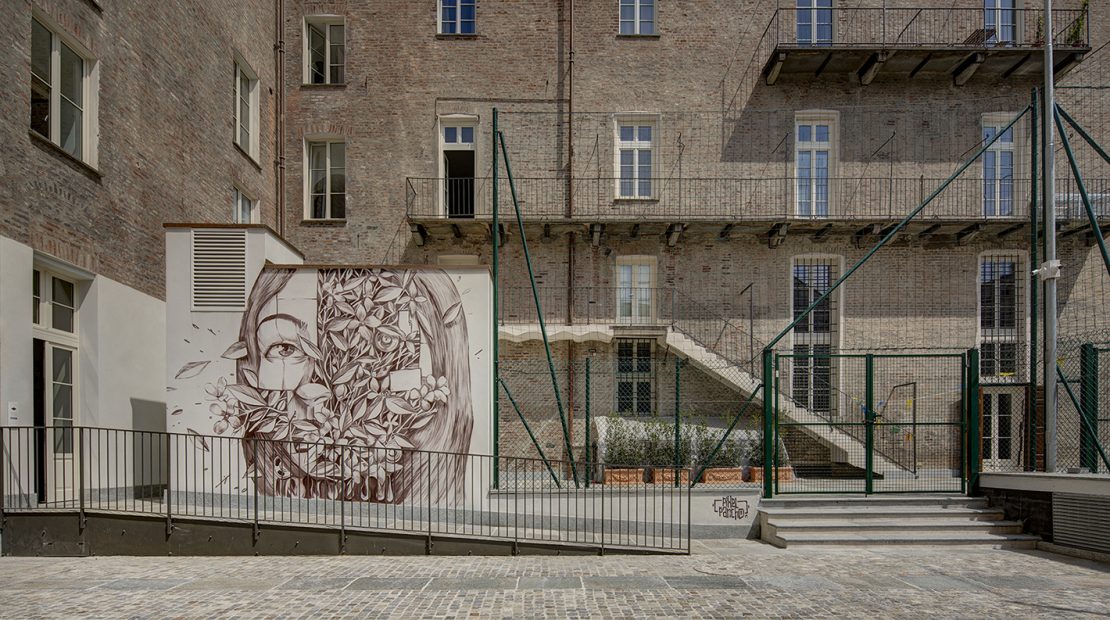 Nuova opera commissionata dal Gruppo Buildingn, l’opera dello street artist apre il cortile della nuova casa nel cuore del Quadrilatero.